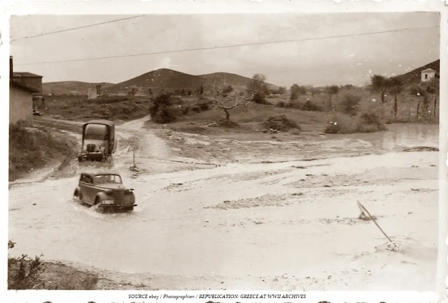 Απρίλιος 1941. Τοξότες Ξάνθης. Γερμανικά οχήματα διασχίζουν ένα ρηχό σημείο του ποταμού Νέστου.